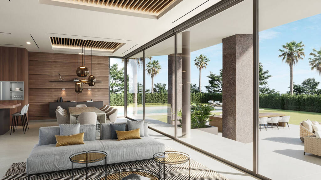 Jede Villa besticht durch ihr individuelles Design und bietet eine Auswahl an Terrassen, Gärten und Chill-out-Bereichen, während die Pools in verschiedenen Stilen gestaltet sind, um höchste Ansprüche zu erfüllen. Mit 6 Schlafräumen und 5 Badezimmern auf drei Ebenen, ergänzt durch zwei Gästebäder, eignet sich das Erdgeschoss ideal für gesellige Zusammenkünfte in einem modernen, offenen Ambiente. Weitere Besonderheiten sind die großzügige Garage für mehrere Fahrzeuge sowie der weitläufige Außenbereich, der hohen Ansprüchen an Unterhaltung gerecht wird.