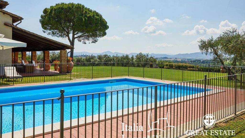 La Vista Sul Bello ist das perfekte Anwesen, um sich ganz der exklusiven und absoluten Privatsphäre der Landschaft Umbriens hinzugeben. Ganz in der Nähe des historischen Ortes Castiglione del Lago gelegen, bietet dieses Anwesen einen herrlichen Ausblick, bei dem man sich vorstellen kann, in Gesellschaft ein Glas Wein zu trinken oder allein ein Buch zu lesen. Der wunderschöne Säulengang und der gesamte Außenbereich bieten immer wieder die Möglichkeit, Momente der Entspannung zu genießen und in Gesellschaft zu feiern.