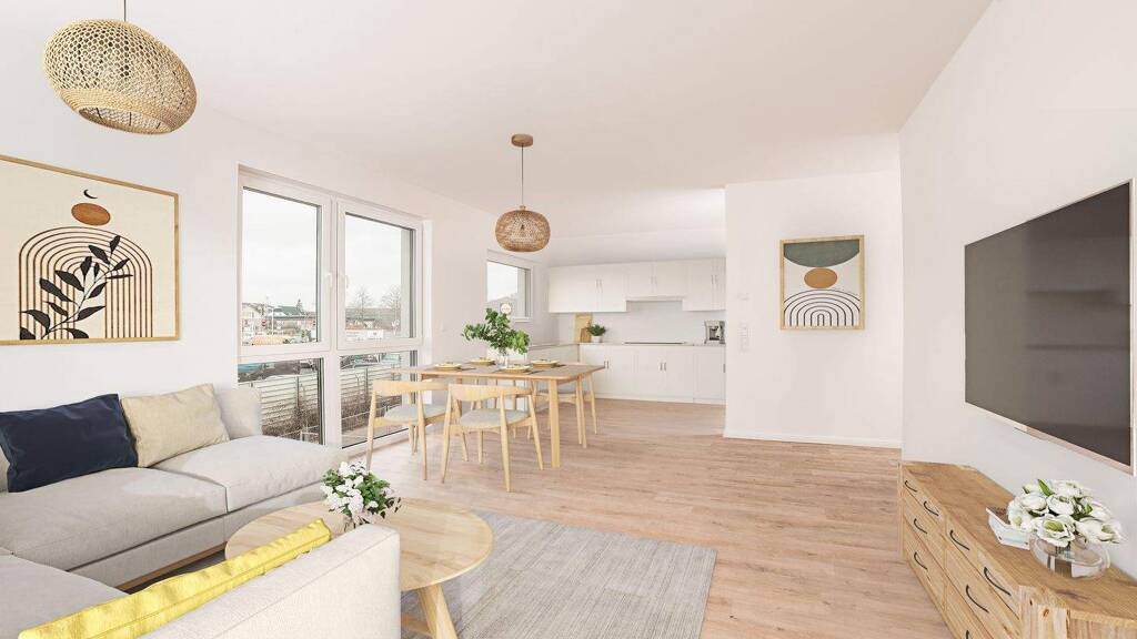 Auf ca. 88,93?m² Wohnfläche erwartet Sie ein komfortables Wohnkonzept mit einem großzügigen Wohn- und Essbereich samt halboffener Küche, zwei ruhigen Schlafzimmern - davon eines ideal nutzbar als Gäste-, Arbeits- oder Kinderzimmer - sowie einem modernen Duschbad, separatem Gäste-WC und einem praktischen Abstellraum mit Waschmaschinenanschluss.