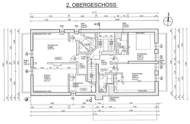 2. Obergeschoss: Vorraum, Schlafzimmer mit Büro-, Schrankraum und Bad, Schlafzimmer...