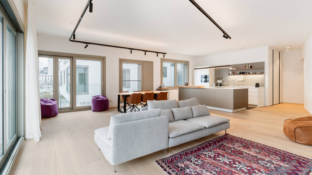 Diese 4-Zimmer Wohnung mit rund 160 m² Wohnnutzfläche befindet sich im ersten Obergeschoß eines modernen Neubauprojekts und beeindruckt mit durchdachter Raumaufteilung, hochwertiger Ausstattung und Raumhöhen von etwa 3 Metern.