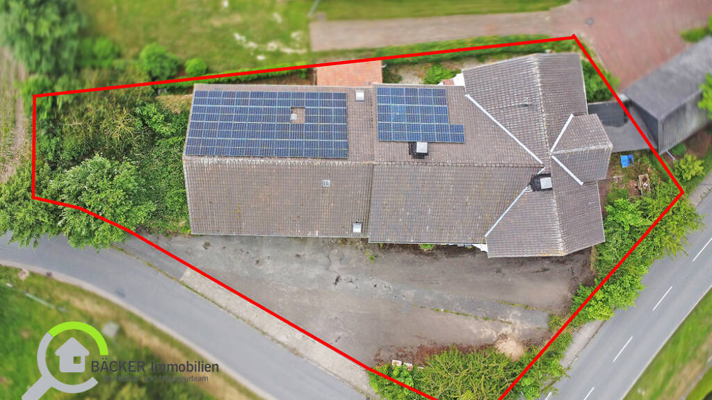 Sehr großes Einfamilienhaus mit Lagerflächen und zwei Garagen ca. 1988 eingebaut, optional 24,78 kWp PV-Anlage (120 m²) mit 5 kWh Speicher für 15.000,- €, renovierungsbedürftig, ehemals Gaststätte, Teilkeller, Schornstein defekt, Fenster teils ca. 2004 ausgetauscht, Ölheizung ca. 2004, Ausbau Obergeschoss ca. 1984, frei, zu sofort