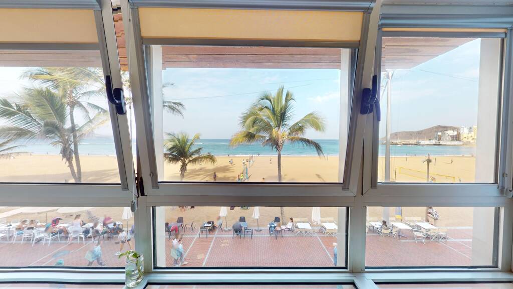 Das Wohnzimmer, die Küche und das Esszimmer bieten zu jeder Zeit einen Blick auf den Horizont, das Meer, den Strand und seine Umgebung. Es ist im Herzen des Paseo de Las Canteras, umgeben von dem Leben des Hafens und seiner Schönheit zu sein.