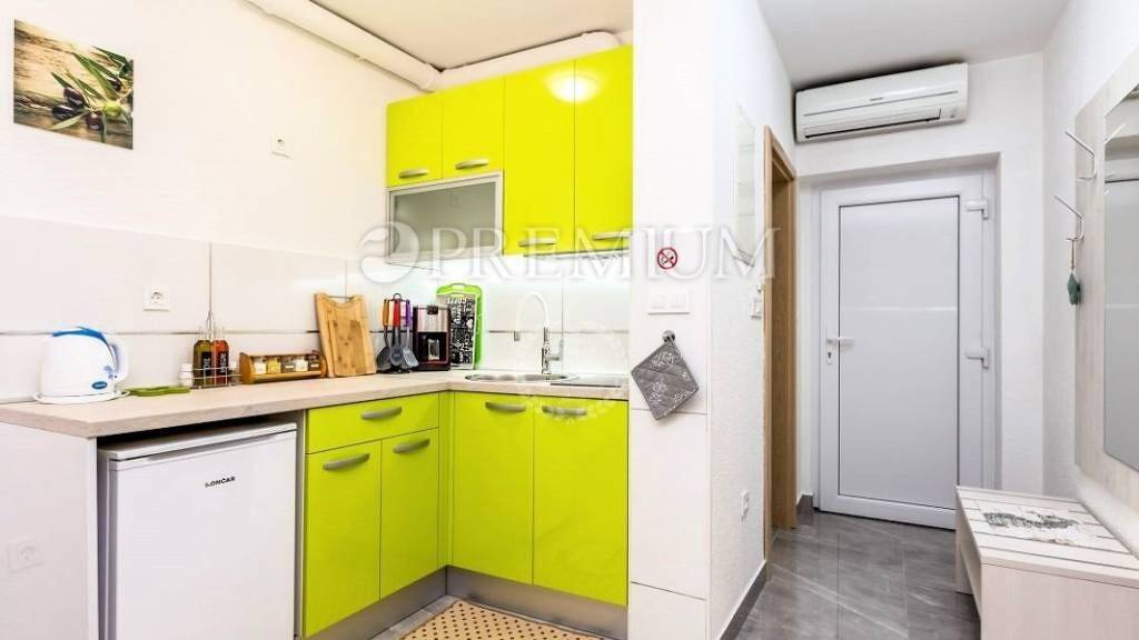 Zum Verkauf steht eine Wohnung in Malinska, gelegen im Souterrain eines gepflegten Wohnhauses, mit einer Gesamtfläche von 37 m² und einem privaten Garten von 81 m².