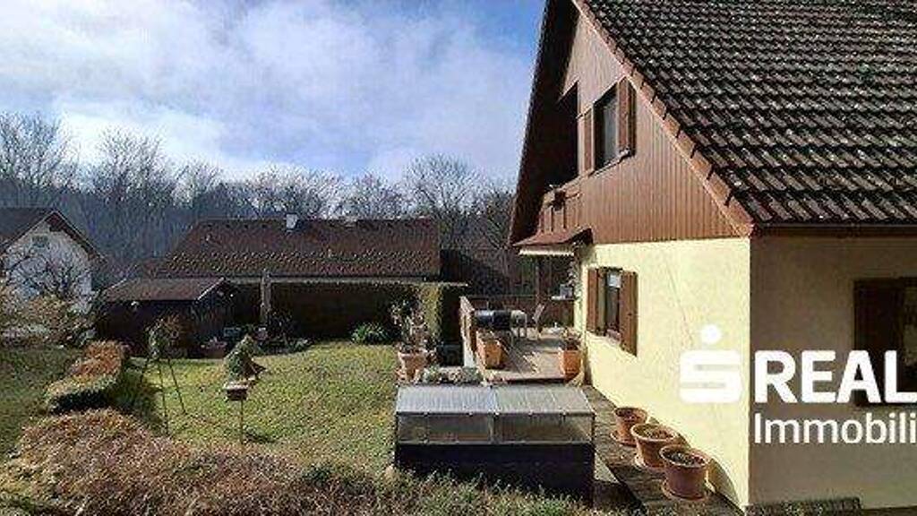Dieses auf einem Keller in Massivbauweise etwa 1996 in einer Siedlung errichtete Wohnhaus verfügt über insgesamt fünf Zimmer, sowie ein Büro im Keller. Dieser auch als Gästezimmer nutzbare Raum befindet sich unmittelbar neben dem Eingangsbereich. Darüberhinaus sind hier eine Doppelgarage, ein großer Lagerraum sowie der Technikraum, wo sich die Heizung sowie die Waschmaschine befinden.