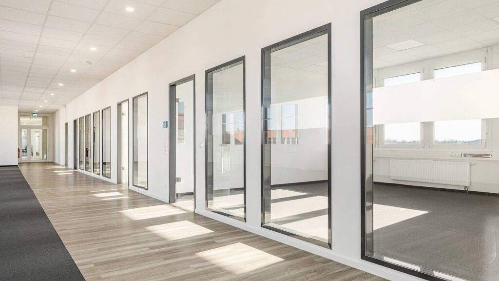 . Renovierte Bürofläche im 2. Obergeschoss . 386,57 m² Gesamtfläche (HNF: 310,68 m² | ENF: 62,22 m² | NNF: 13,67 m²) . Mehrere Büroräume, Archiv, Abstellraum und Teeküche . Teppichboden, Kunststofffenster und Sonnenschutz . Empfangsbereich vorhanden, flexible Raumaufteilung . Bodentraglast 600 kg/m² . 24/7 Zugang mit Sicherheitsdienst und Center Management . Preis auf Anfrage