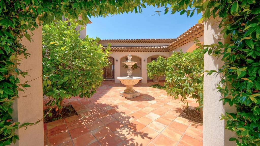 The property consists of a main villa and 2 apartments, a 110m2 2 bedrooms, and a 42m2 1 bedroom. You will be charmed from the entrance which is through a very nice patio with its fountain, which leads you to the main villa composed as follows: entrance, large living room with fireplace opening onto a large covered terrace, dining room, large dining fitted kitchen, scullery, pantry and laundry room, large study, 3 bedrooms and their en-suite bathrooms, upstairs: 3 other en-suite bedrooms, including a master opening onto a beautiful terrace with sea view, at garden level, large living room with bar and play room opening onto terrace, gym, sauna and jacuzzi, cinema room and wine cellar.