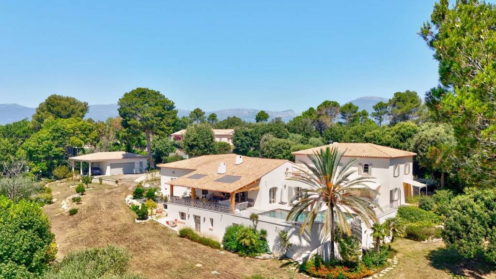 Beautiful landscaped garden over 4,400m2 with swimming pool, planted with Mediterranean species, numerous palm and olive trees. Double garage with workshop, carport, several parking spaces. Ideally located in a residential and sought-after domain, 3 mins from shops and all amenities, 5 mins from the villages of Valbonne and Biot, 15 mins from the sea, 25 mins from Cannes and Nice airport.