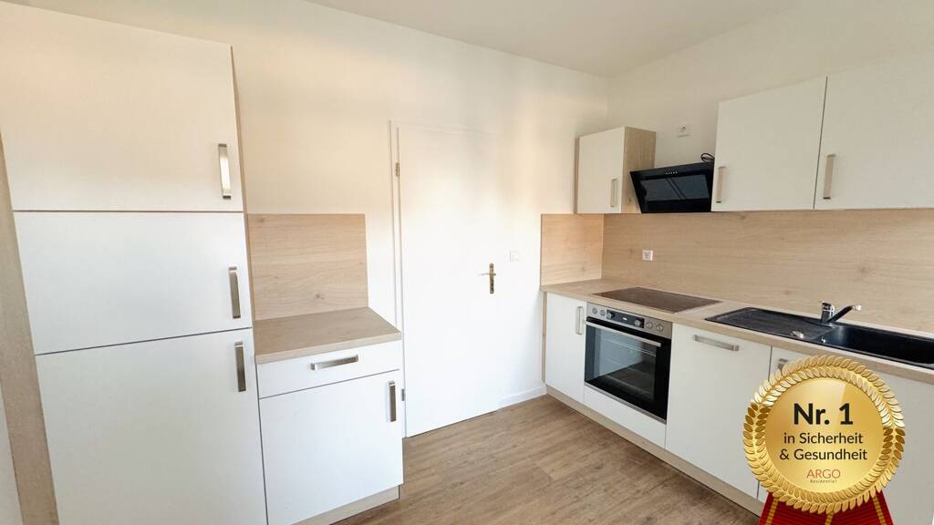 Laminatboden in den Wohnräumen und Fliesenbelag im Badbereich sorgen für eine praktische und pflegeleichte Gestaltung. Eine vollständig eingerichtete Einbauküche ist bereits vorhanden und ermöglicht einen unkomplizierten Einzug. Zusätzlicher Stauraum steht durch einen praktischen Abstellraum zur Verfügung.