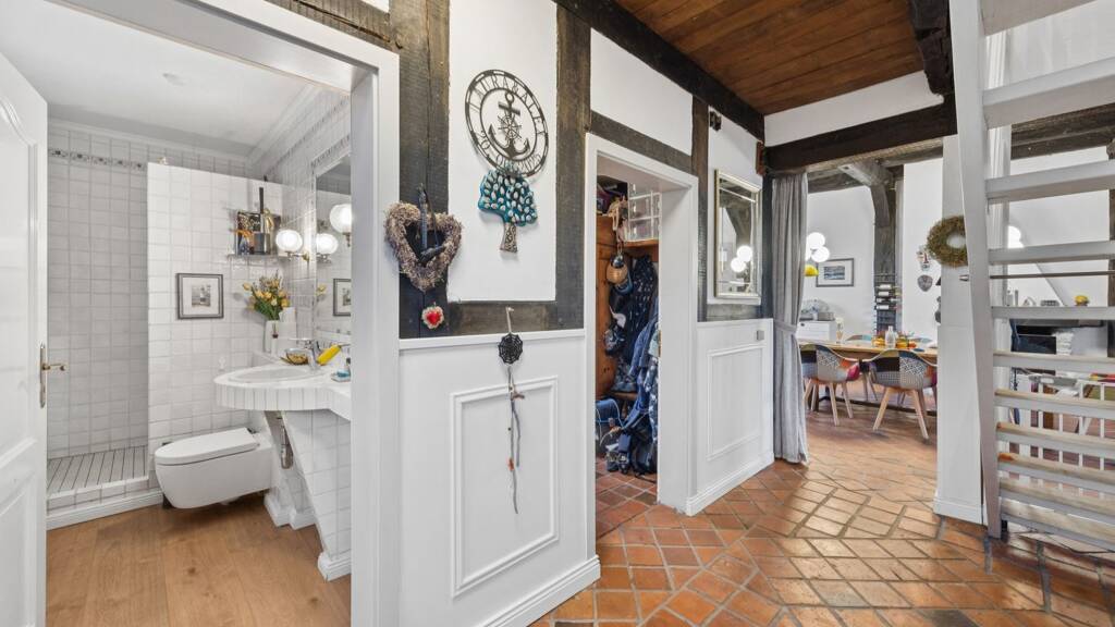 2,38 % Käuferprovision inkl. MwSt., verdient und fällig mit Beurkundung des notariellen Kaufvertrages, berechnet auf Grundlage der beurkundeten Kaufpreissumme. Der Immobilienmakler hat einen provisionspflichtigen Maklervertrag mit dem Verkäufer in gleicher Höhe abgeschlossen. Sonstiges Diese Immobilie ist eine Rarität - nicht nur durch ihre aufwendige Fachwerkarchitektur, sondern auch durch die gelungene Kombination aus historischem Charakter, hochwertiger Ausstattung und traumhafter Lage. Die Dachböden im Haupthaus und über der Garage bieten vielseitige Nutzflächen - ob für Stauraum oder als Ausbaureserve.