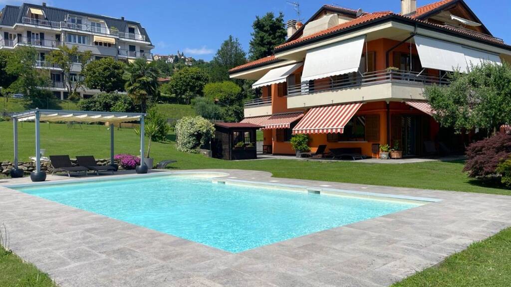 Auf den Hügeln von Verbania, in einer exklusiven und sonnigen Wohngegend, bieten wir eine charmante Erdgeschosswohnung in einem Zweifamilienhaus mit großem Privatgarten und Pool an, von dem man einen parziellen Blick auf den Lago Maggiore genießen kann.