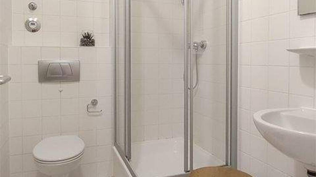 Das Badezimmer bietet eine Dusche. Waschmaschinennutzung ist möglich gegen Gebühr.
