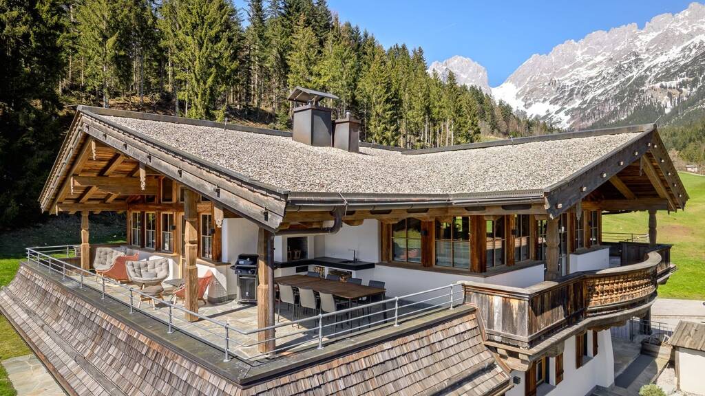 Direkt am Fuße des Wilden Kaisers in ruhiger Lage, mit Blick auf die umliegende Bergwelt befindet sich diese luxuriöse Landhausvilla.