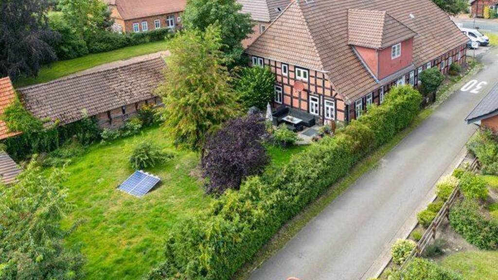 Diese ursprünglich in 1886 errichtete Immobilie mit Holz-Fachwerk und einem Dach aus traditionellen Tondachziegel befindet sich mitten im bereits 1646 erwähnten "Scheunen-Viertel" von Neubruchhausen, ist bezugsfertig und bietet viel Platz für Wohnen und Leben -- im Gegensatz zu einem gewöhnlichen Neubau hat dieses Gebäude sein ganz eigenes Wohn- und Raumklima.