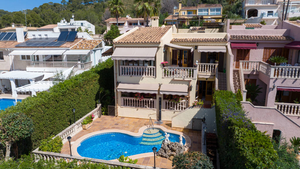 Willkommen im Paradies! Diese exklusive Doppelhaushälfte in Alcanada bietet ein luxuriöses Wohnambiente mit atemberaubendem Meerblick. Mit insgesamt 4 Doppelschlafzimmern, einem Einzelschlafzimmer sowie 2 Bädern und einem Gäste-WC ist genug Platz für die ganze Familie und Gäste vorhanden. Das Herzstück des Hauses ist das geräumige Wohnzimmer mit einem einladenden Kamin, das zum Entspannen und geselligen Beisammensein einlädt. Die separate Küche ist modern und funktional gestaltet und lässt keine Wünsche offen. Das Highlight dieser Immobilie sind die Terrassen, die einen spektakulären Blick auf das azurblaue Meer bieten. Der eigene Pool lädt dazu ein, sich an warmen Tagen zu erfrischen, und der angrenzende BBQ-Bereich ist ideal für gesellige Grillabende mit Familie und Freunden. Das Haus ist mit modernster Klimaanlage ausgestattet, um Ihnen zu jeder Jahreszeit höchsten Komfort zu bieten. Darüber hinaus verfügt die Immobilie über einen geräumigen Keller, der vielseitig nutzbar ist - sei es als Fitnessraum, Spielzimmer oder zusätzlicher Stauraum. Für Ihr Fahrzeug steht eine Garage für ein Auto bereit, die nicht nur Schutz bietet, sondern auch Bequemlichkeit. Diese Doppelhaushälfte vereint Eleganz, Komfort und Funktionalität, tauchen Sie ein in das mediterrane Lebensgefühl und erleben Sie Ihren Traum von einem stilvollen Wohnen mit Meerblick!