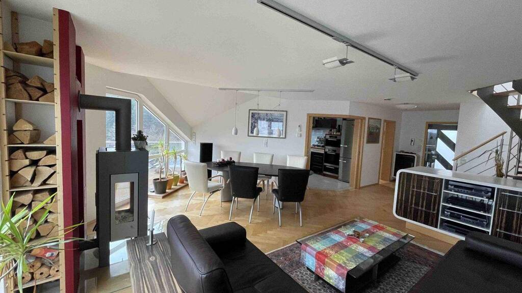 Die Wohnung besticht durch eine großzügige Dachterrasse, die ideal für entspannte Stunden im Freien ist. Hier genießen Sie die frische Luft und den Blick ins Grüne. Die moderne Einbauküche lädt dazu ein, kulinarische Köstlichkeiten zu zaubern und gesellige Abende zu verbringen. Dazu ein gutes Glas Wein, das Sie direkt aus dem vorhandenen Weinkühlschrank genießen können.
