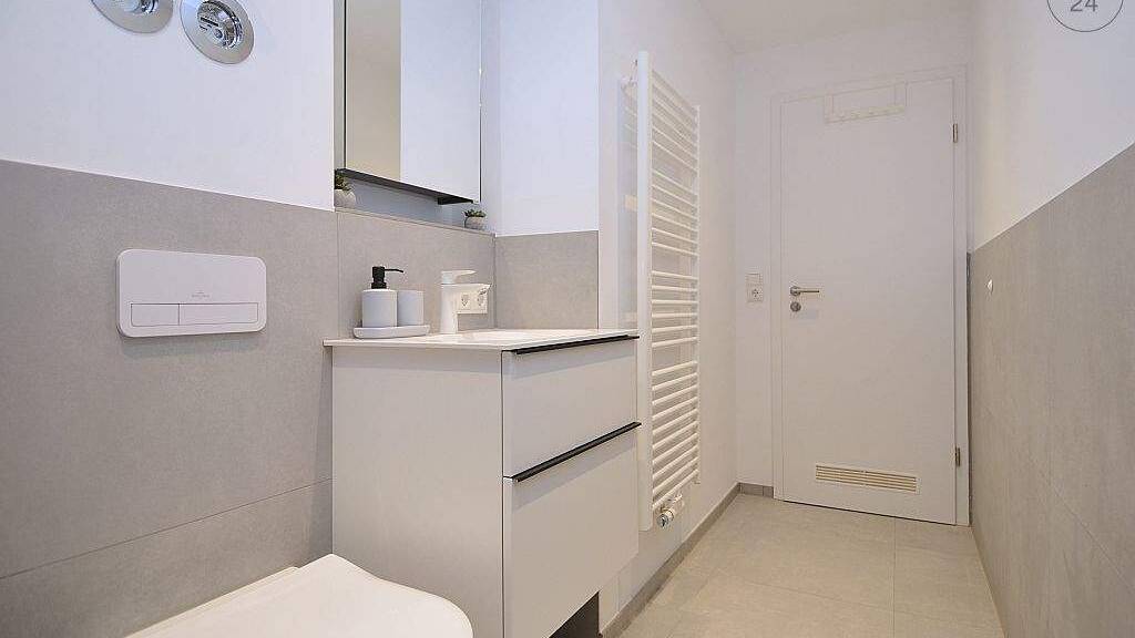 Die moderne Einbauküche mit Geschirrspüler ist voll ausgestattet. Hier befindet sich die Waschmaschine und steht dem Mieter zur Verfügung.