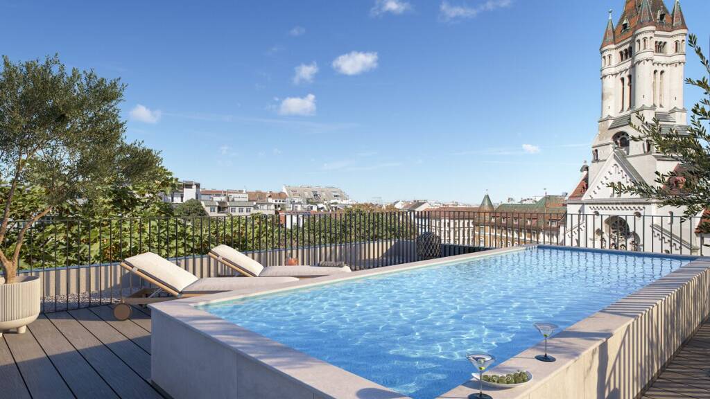 Das Penthouse bildet den architektonischen Höhepunkt des Projekts. Auf rund 187 m² Wohnfläche eröffnet sich ein exklusives Refugium mit spektakulärem Ausblick über Wien.