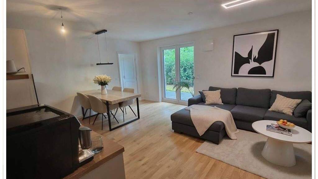Die ca. 69 m² große 2-Zimmer-Wohnung befindet sich im Erdgeschoss eines mit Baujahr 2023 noch recht jungen gepflegten Mehrfamilienhauses mit ansprechender Architektur, die diese Immobilie aus dem Pool der modernen Einheitsarchitektur heraushebt. Der großzügige Wohnbereich mit integrierter, offener Küchenzeile bildet das Herzstück der Wohnung. Die große Fensterfront mit bodentiefen Elementen sorgt für reichlich Tageslicht und eine helle, freundliche Atmosphäre. Vom Wohnzimmer sowie vom Schlafzimmer aus gelangt man direkt auf die Süd- und Ostterrasse - ein idealer Rückzugsort für entspannte Stunden im Freien. Das Badezimmer hat eine exklusive Sanitärausstattung (z.B. große Walk-in-Dusche), in der nebenan liegenden Kammer/Hauswirtschaftsraum haben Waschmaschine und Trockner ihren Platz. Ein eigenes Kellerabteil sorgt für zusätzlichen Stauraum, während ein Stellplatz in der Tiefgarage das Angebot abrundet. Die Wohnung ist barrierefrei zugänglich, und hat extra breite Innentüren! Die Wohnung präsentiert sich insgesamt in einem sehr gepflegten Zustand mit viel Charme und einem offenen Schnitt, der ein angenehmes Wohnen garantiert. Sie eignet sich dank der Barrierefreiheit und des eigenen Gartens ausgezeichnet sowohl zur Eigennutzung als auch als langfristige attraktive Investitionsmöglichkeit für Kapitalanleger in eine wertstabile Immobilie. Frei wird die Wohnung zum 01.03.2026.