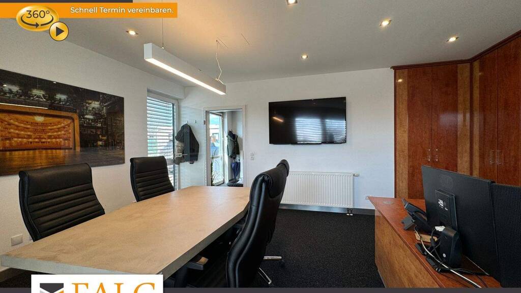 Beim Betreten des Gebäudes fällt sofort die großzügige und helle Gestaltung der Räume auf. Die Bu?ros mit zur Zeit 4 Arbeitsplätzen sind mit großen Fenstern ausgestattet, die viel Tageslicht hereinlassen und eine angenehme Arbeitsatmosphäre schaffen. Die Beleuchtung wird durch moderne Einbauleuchten ergänzt, die eine gleichmäßige Ausleuchtung gewährleisten.