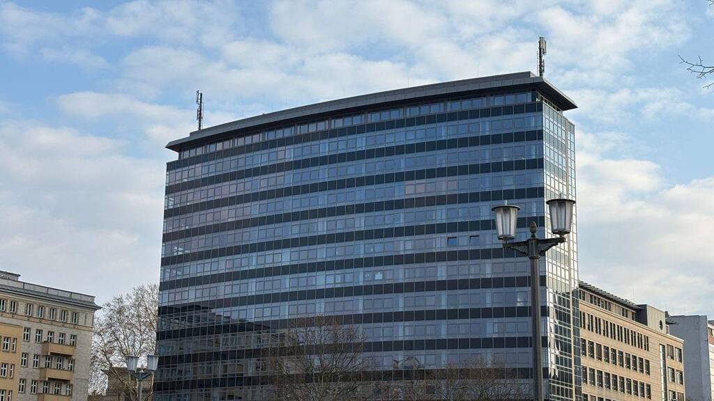 he commercial building is located in the middle of the self-contained urban ensemble of Karl-Marx-Allee. The 14-story high-rise is currently a living testimony to the architecture of the 1950s and an enrichment of the Berlin cityscape. An attractively designed forecourt with a fountain and the restaurant terrace invite visitors to linger.