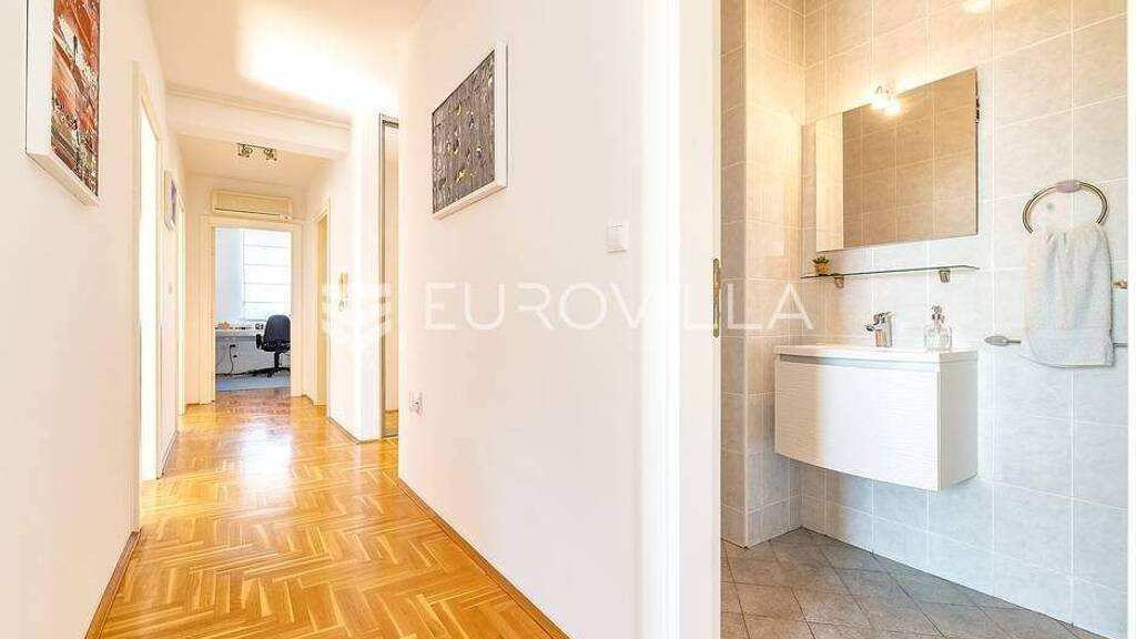 Bijenik, izvrstan cetverosoban stan na 1.katu odlicno odrzavane stambene zgrade iz 2004.g.Sastoji se od ulaznog hodnika, odvojenog spavaceg dijela s tri spavace sobe i velikom kupaonicom s kadom, hodnika, druge kupaonice s tus kadom, open, kuhinje, open space blagovaone s dnevnim boravkom i izlazom na loggiu.Stanu dodatno pripada garaza i vanjsko parkirno mjesto.Nalazi se na izvrsnoj lokaciji, odlicno prometno povezano javnim prijevozom.Ostale informacije na upit.