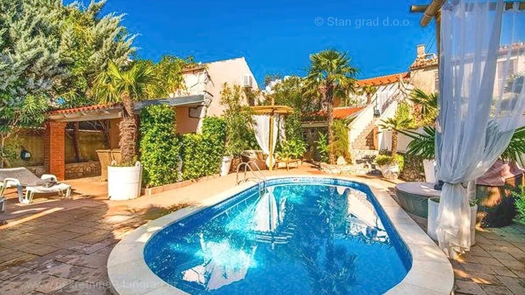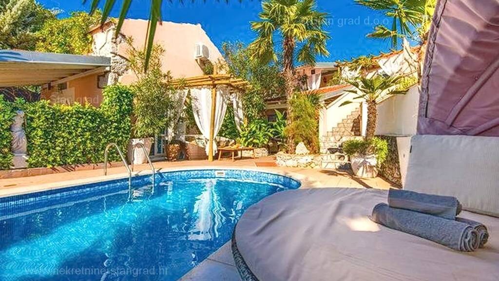 Im Rahmen des breiten Angebots an Immobilien in der Kvarner-Bucht verkauft die Agentur Stan Grad Immobilien ein sehr gutes und gut ausgestattetes Haus für den Tourismus im begehrten Mittelmeer-Adria-Reiseziel, der Insel Krk. Dieses charmante Haus befindet sich in ruhiger Lage, nicht weit vom Meer und dem Zentrum von Silo entfernt. Strukturell gesehen handelt es sich um ein einstöckiges Haus. In der Natur handelt es sich um zwei separate Gebäude, die drei separate Wohnungen bilden. Im ersten Gebäude im Erdgeschoss befindet sich eine Wohnung von 63 m2, die ein Wohnzimmer, eine Küche mit Esszimmer, ein Badezimmer, 2 Schlafzimmer und eine geräumige überdachte Terrasse umfasst. Im ersten Stock desselben Gebäudes befindet sich eine 53 m2 große Wohnung, bestehend aus einem Wohnzimmer, einer Küche mit Esszimmer, einem Schlafzimmer, einem Badezimmer und einer überdachten Terrasse. Ein weiteres Objekt auf dem gleichen Grundstück ist ein Studio-Apartment von 30 m2, das derzeit als Sozialraum genutzt wird und im Erdgeschoss ein Wohnzimmer und ein Badezimmer sowie im Dachgeschoss ein Schlafzimmer enthält. Der Innenbereich der Immobilie ist besonders gepflegt und komplett mit den notwendigen technischen Geräten und hochwertigen Möbeln ausgestattet. Zum Eigentum dieses Hauses gehört auch ein sorgfältig angelegter Garten mit einem speziell raffinierten Swimmingpool, einer Liegewiese, einem Whirlpool und einem Grillbereich zum Entspannen. Der großzügige Garten des beschriebenen Anwesens ist mit bequemen Parkplätzen für mehrere Fahrzeuge ausgestattet. Darüber hinaus ist anzumerken, dass das Haus einen wunderschönen Blick auf diesen Küstenort bietet. Diese Immobilie ist Eigentum einer natürlichen Person und unterliegt daher mit der Eigentumsübertragung auf den Käufer der Verpflichtung zur Zahlung einer Immobilienumsatzsteuer in Höhe von 3 %. Der Verkäufer dieses Hauses garantiert eine vollständige und ordnungsgemäße Dokumentation sowie eine einfache Übergabe der Immobilie an den Käufer. Kontaktieren Sie uns vertrauensvoll unter der Adresse unseres Büros auf der Insel Krk und wir werden Ihr Partner für den sicheren Kauf von Immobilien in Kvarner sein. Neben der Präsentation der Immobilie und ihres rechtlichen Status sowie der Verhandlung mit dem Immobilienmakler unterstützt unser Expertenteam den Käufer bei der Eigentumsübertragung des Hauses und der Überweisung von Rechnungen für Strom, Wasserversorgung und Versorgungsleistungen auf seinen Namen.