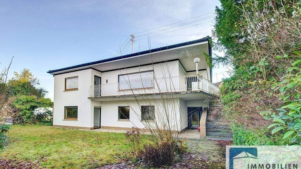 Das in seinem Ursprung um 1976/77 erstellte Wohnhaus mit tollem Aussichtsbalkon und Terrasse wurde durch einen seinerzeit bekannten Architekten geplant und in Massivbauweise erstellt. Die Immobilie wurde für eine große Familie konzipiert und erfreut sich einer üppigen Anzahl an Wohnräumen. Das Untergeschoss, welches stets eigengenutzt und für Schlafräume in Verwendung stand, kann bei Bedarf als separate Einliegerwohnung mit eigenem Eingang genutzt werden. Hier befinden sich, neben den genannten Schlafräumen, bereits ein Duschbad sowie entsprechende Anschlüsse für einen Küchenbereich. Auch ist ebenerdiges Wohnen auf einer Ebene im Bereich des Erdgeschosses möglich.