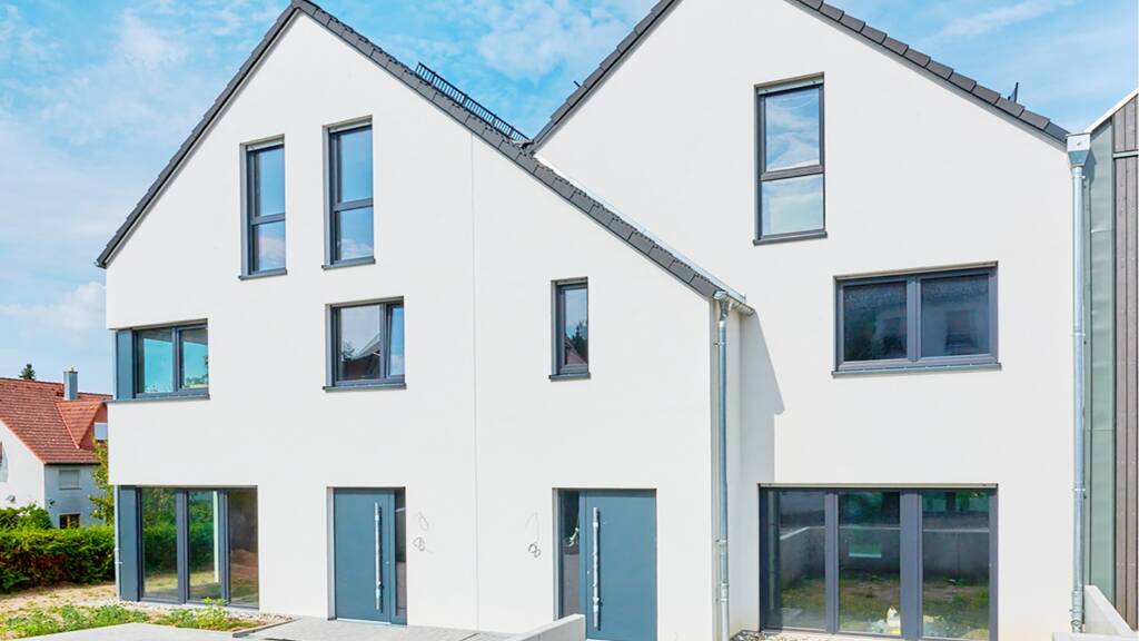 Bereits die Architektur der beiden Wohnhäuser überzeugt: Raffiniert miteinander verbunden, dabei geradlinig, modern und zeitlos schlicht fügt sich das neue Gebäude-Ensemble in die bestehende Umgebung ein.