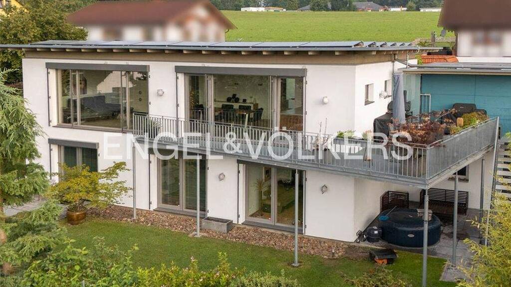Im Jahre 2007 entstand dieses zukunftsweisende Einfamilienhaus im Cubus-Style; 2009 wurde die Immobilie mit dem "Golden Cube" ausgezeichnet. Das Haus wurde in Holztafelbauweise (Passivhaus) errichtet. Besonderes Highlight ist die offene, lichte Raumaufteilung mit großen Fensterflächen, die hochwertige Innenausstattung und die großzügige Balkonanlage mit Fernblick.