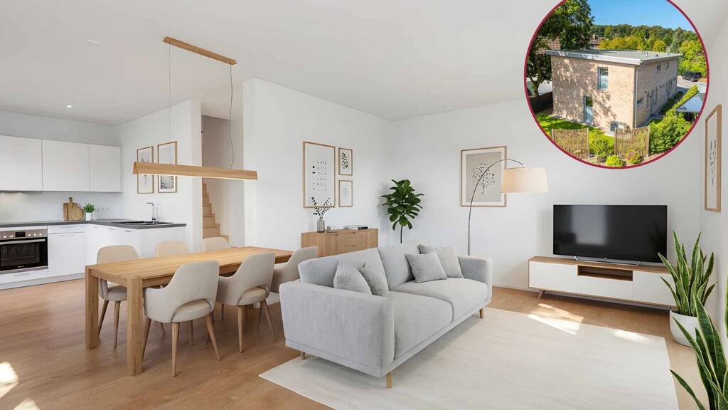 Das Haus bietet eine durchdachte Raumaufteilung mit offenem Wohn- und Essbereich, Zugang zur Terrasse und einem eigenen Garten - ein perfekter Ort zum Entspannen und Genießen.