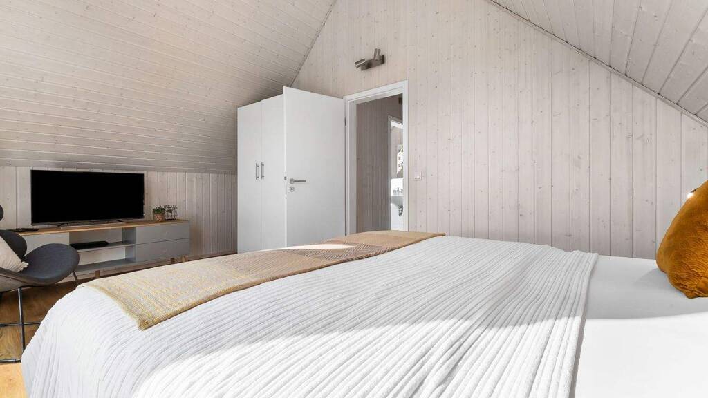 Im Inneren erwartet Sie ein gemütlicher Wohnbereich mit einem Ofen für kuschelige Abende. Das Erdgeschoss bietet zudem ein Duschbad mit Infrarot-Wärmekabine, während im Obergeschoss ein Wannenbad zur Verfügung steht. Mit insgesamt 2 Schlafzimmern ist ausreichend Platz für Sie und Ihre Gäste vorhanden.