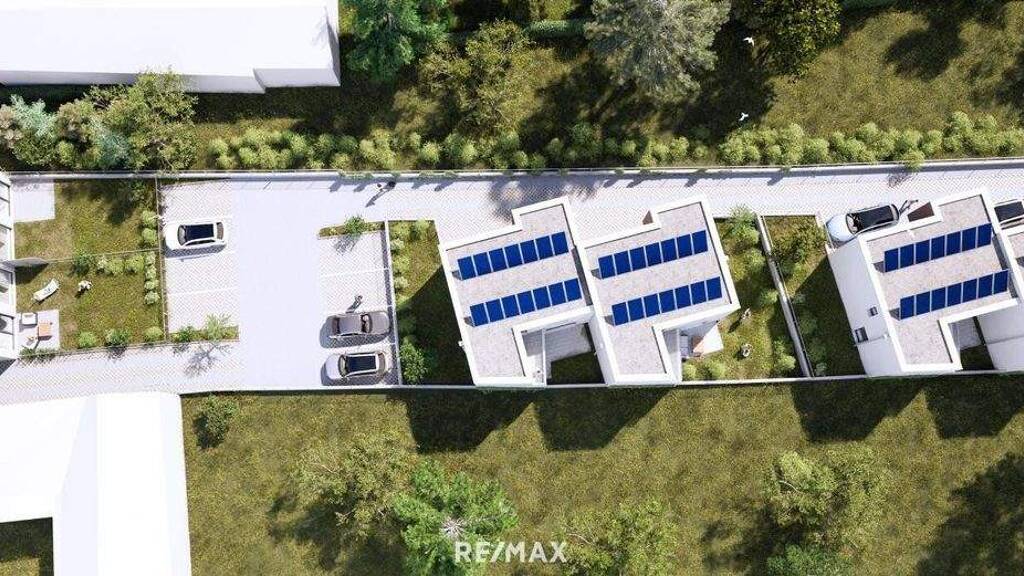 Eine PV-Anlage, eine Klimaanlage oder eine E-Ladesäule für Elektroautos kann gegen Aufpreis angeboten werden. Eine Leerverrohrung ist standardmäßig eingebaut.