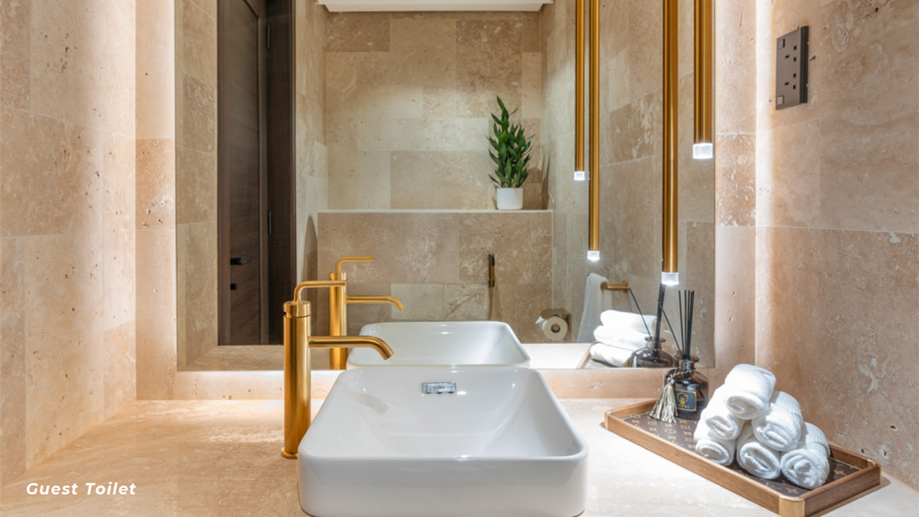 Die großzügig geschnittene Wohnung verfügt über 3 Schlafzimmer, ein Maid's Room (Personalzimmer), einen separaten Waschraum sowie insgesamt 5 Badezimmer. Das gesamte Interieur wurde mit viel Liebe zum Detail und unter Verwendung hochwertigster Materialien und maßgefertigter Möbel vollständig neu gestaltet.