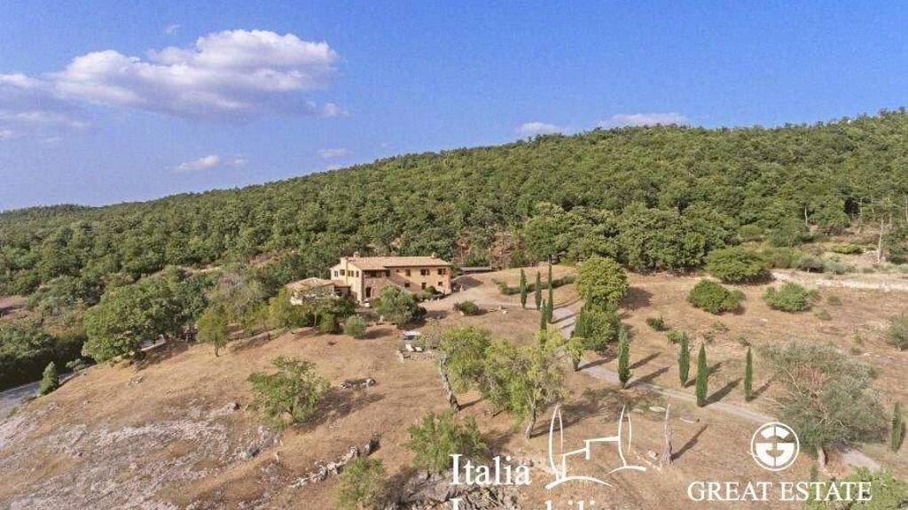 Casale Camilla, in den grünen Hügeln des Valdichiana gelegen, steht auf einem alten Sandsteinfelsen, in einer herrlichen Lage mit einem spektakulären Blick auf das Val d'Orcia. Das Ende der 1980er Jahre erworbene Casale Camilla wurde einer umfassenden Restaurierung unterzogen, die dazu führte, dass die beiden um 1900 getrennten Gebäude zusammengeführt wurden. Das Anwesen, das zwischen 1790 und 1830 als Poststation für den Pferdewechsel an der nach Radicofani führenden Römerstraße diente, hat dank der perfekten Restaurierung einige der ursprünglichen Merkmale der früheren Gebäude bewahrt. Casale Camilla, benannt nach der jahrhundertealten Zypresse, die sich auf dem Grundstück befindet, ist ein charmantes Haus aus Stein und Putz, zu dem man über eine breite, bequeme Treppe aus toskanischer Terrakotta gelangt. Die Holzbalken, die gelben Farbtöne an den Wänden, die gemauerten Bögen und die Terrakottaböden versetzen den Besucher sofort in eine warme Atmosphäre, die typisch für den toskanischen Stil ist. Der große Wohnbereich, bestehend aus einem Wohn- und einem Esszimmer, zeichnet sich durch drei originale Steinbögen und halbrunde Fenster mit atemberaubendem Blick auf das umliegende Tal aus. Auf der gleichen Etage befinden sich eine geräumige Küche mit Kamin, ein Flur, der ins Obergeschoss führt, ein Abstellraum, ein Schlafzimmer mit eigenem Bad, eine Waschküche und ein Technikraum. Im ersten Stock gibt es einen Schlafbereich mit Parkettboden, 3 Schlafzimmer mit eigenem Bad, ein Hauptschlafzimmer mit Bad und Kleiderschrank und ein Hauptschlafzimmer mit Bad, großem Steinkamin und Blick auf die Loggia (9 qm), die auch einen direkten Zugang von der Außentreppe ermöglicht, unter der sich ein Holzschuppen befindet. Das Grundstück wird durch eine Pergola (18 m²) vervollständigt, die sich parallel zur Treppe befindet, die zum Bauernhaus und zu 14,6 ha Land führt.
