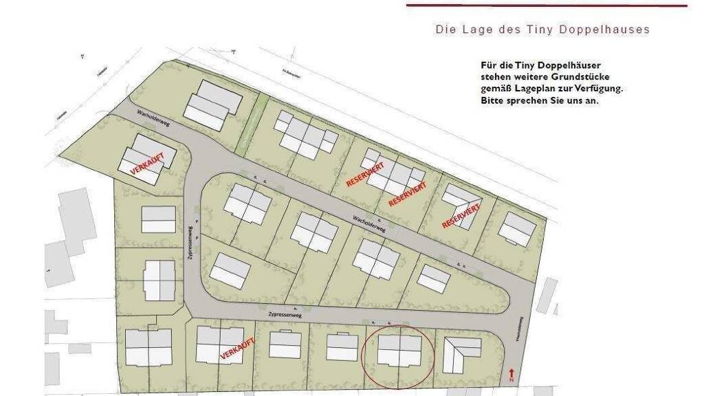 Neu / letzter Bauabschnitt: Ebenerdiges "Tiny-Doppelhaus" mit 3-Zimmern und ca. 70 m² in ruhiger Wohnlage im Wacholderweg