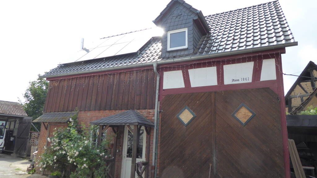 Dieses charmante Fachwerkhaus aus dem Jahr 1842 mit rotem Gebälk bietet jede Menge Platz für individuelles Wohnen mit historischem Flair. Ergänzt wird es durch ein ebenfalls denkmaltypisches Nebengebäude und einen Anbau aus dem Jahr 2001. Die Immobilie verfügt aktuell über zwei Wohneinheiten: eine vermietete 2-Zimmerwohnung mit einer jährlichen Bruttomieteinnahme von € 9.000,-- sowie eine großzügige 6-Zimmerwohnung, verteilt auf Büro im Erdgeschoss, Hauptwohnung im 1. Obergeschoss und zwei weitere Zimmer im Dachgeschoss. 2019 wurde das Haus teilweise saniert - unter anderem mit neuen Wasser- und Stromleitungen, einer wasserführenden Pelletheizung, einer Photovoltaikanlage, einem ca. 40?m² großen Balkon, neuen Fenstern mit elektrischen Jalousien sowie aufgearbeiteten Holzdielen. Das Nebengebäude dient derzeit als Werkstatt und kann zu Wohnraum umgebaut werden. Ein großer Garten, Innenhof, Geräteschuppen, zwei Garagen, Carport, Stellplätze, Entkalkungsanlage und ein Keller runden das umfangreiche Angebot ab.