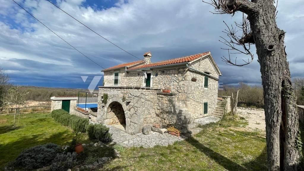 Immobilien Insel Krk, Region Malinska Ein charmantes, freistehendes Steinhaus steht auf einem großzügigen Grundstück von 913 m zum Verkauf. Das Haus wurde im typisch mediterranen Stil renoviert und verfügt über eine Gesamtwohnfläche von 100 m, verteilt auf zwei Etagen. Im Erdgeschoss befinden sich eine Küche mit Esszimmer und Zugang zu zwei Terrassen, ein Wohnzimmer und ein alter Wassertank, der auf Wunsch zu einem zusätzlichen Raum umgebaut werden kann. Eine Innentreppe führt in den ersten Stock, der aus zwei Schlafzimmern, einem Badezimmer und einer Terrasse besteht. Im wunderschön angelegten Garten von 744 m befinden sich ein Gartenhaus, mehrere Parkplätze und eine Sonnenterrasse mit einem 35 m großen Pool. Das Haus ist voll möbliert und kann sofort bezogen oder touristisch vermietet werden. Diese Immobilie befindet sich in ruhiger Lage, etwa 3 km vom Meer und den ersten Stränden entfernt und ist eine ideale Gelegenheit für alle, die einen ruhigen Urlaub genießen möchten. Die Agentur Vala Estate Malinska sorgt für eine sichere und transparente Eigentumsübertragung und alle notwendigen Unterlagen.