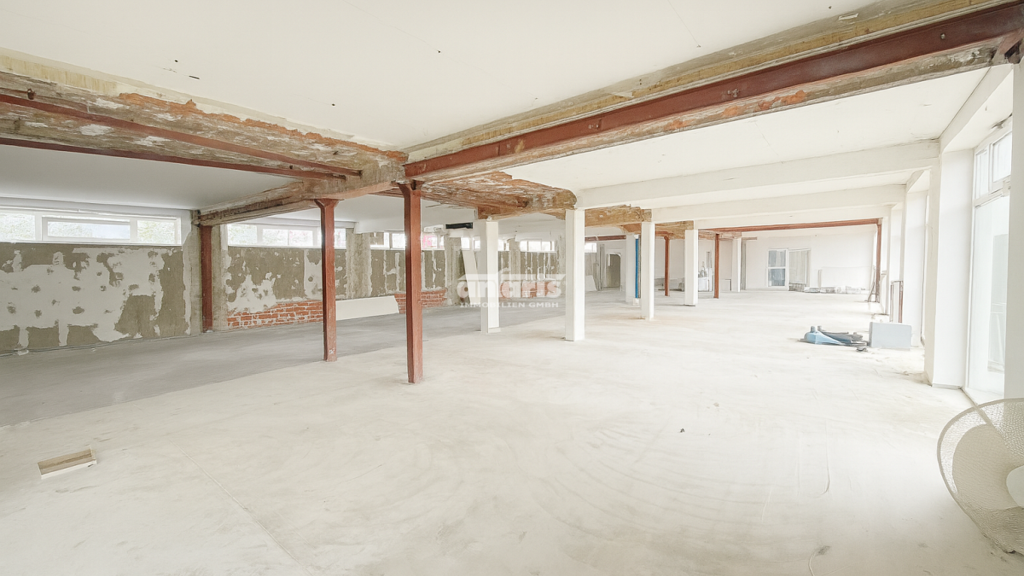 Im Erdgeschoss befindet sich eine ca. 464,13 m² große Mieteinheit, die derzeit entkernt ist und sich im Rohbau befindet. Diese Fläche bietet Ihnen die Möglichkeit, Ihre individuellen Gestaltungsideen umzusetzen.