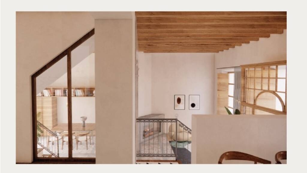 Die rustikalen Details wie die antiken Mosaik- und Steinböden sowie die sichtbaren Holzbalken verleihen dem Haus einen authentischen Charakter, der durch die traditionellen Holzflügeltüren unterstrichen wird. Im Inneren erwarten Sie ein geräumiges Wohn- und Esszimmer, eine großzügige Küche, sechs Schlafzimmer und ein Badezimmer.