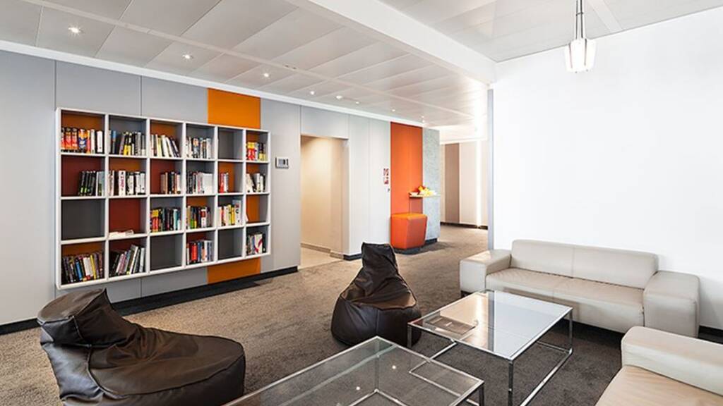 - Moderne Lobbybereiche aus 2018 - Außenliegender Sonnenschutz - Zugluftfreie Kühlung mittels Kühlbalken (raum- oder zonenweise steuerbar) - Mechanische Be- und Entlüftung aller Räume - 2-facher Luftwechsel in Büroräumen - bis zu 6-facher Luftwechsel in Meetingräumen - Doppelboden, abgehängte Loch-Decke (für verbesserte Raumakustik) - Computergerechte Arbeitsplatzbeleuchtung in der Decke verbaut - Größtmögliche Flexibilität im Innenausbau - Einzel-, Kombi- oder Gruppenbüros möglich - Zutrittskontrolle, Videoüberwachung - Lastenaufzüge in jedem Gebäude und großzügige Anlieferzonen