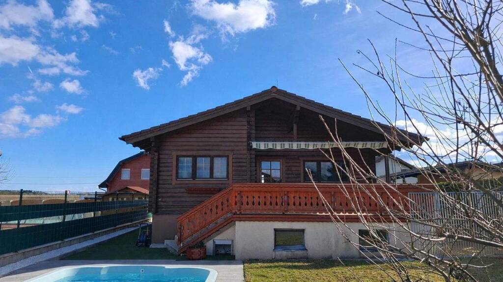 Das 1991 von Schultes Blockhaus fertig gestellte Holzblockhaus (12cm dicke finnische Hochlandkiefer zzgl. 5cm Wärmedämmung) verfügt über ca. 175 m² Wohn - und Nutzfläche, davon ca. 82 m² Wohnfläche im Erdgeschoss sowie ca. 25 m² Wohnfläche im Keller. Ein Highlight der Immobilie ist sicher die 20 m² große Terrasse die vom Wohnzimmer aus begehbar ist und über einen Abgang zum Garten verfügt, zudem sind ca. 10 m² der Terrasse überdacht.