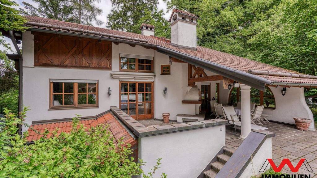Das Haus überzeugt mit zahlreichen hochwertigen Einbauten und exklusiven Details namhafter Hersteller. Ein großzügiger Wellnessbereich mit Whirlpool, Sauna, Dampfbad, Ruheraum mit Kamin und Tiefterrasse schafft echtes Spa-Feeling. Behaglichkeit bieten die Bauernstube mit Kachelofen sowie der offene Wohn-Essbereich mit Galerie und weiterem Kachelofen. Das elegante Marmorbad mit großer runder Wanne sowie ein zweites Bad im Dachgeschoss runden den Komfort ab. Wärmepumpe, Fußbodenheizung sowie pflegeleichte Terracotta- und Natursteinböden ergänzen die hochwertige Ausstattung.
