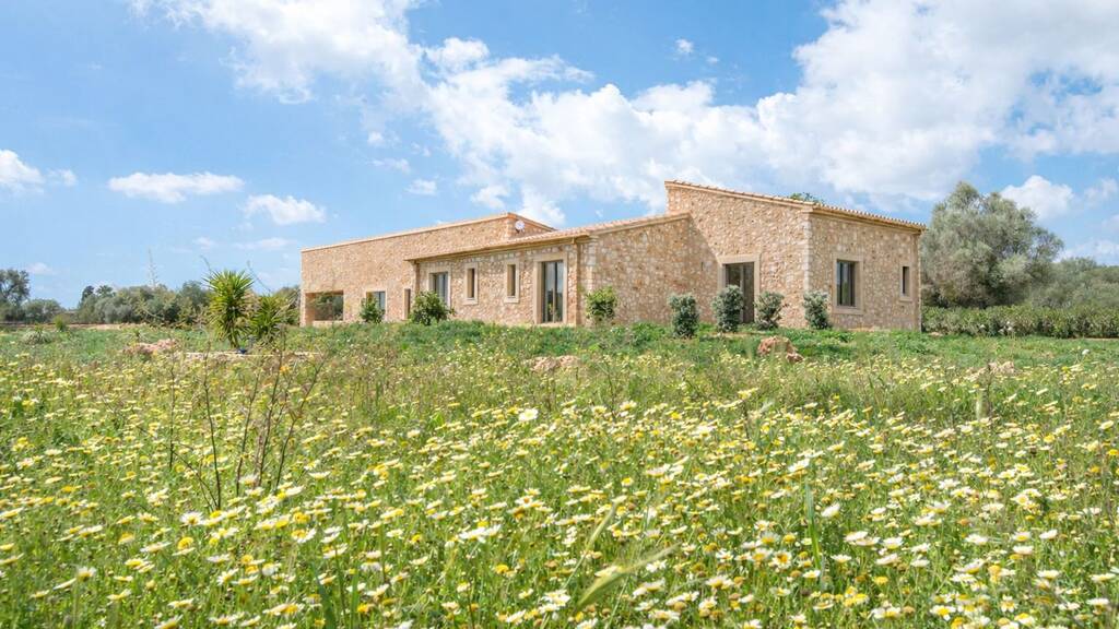 Neubau-Finca mit Natursteinfassade und Pool in ruhiger Lage zwischen Campos und Es Trenc