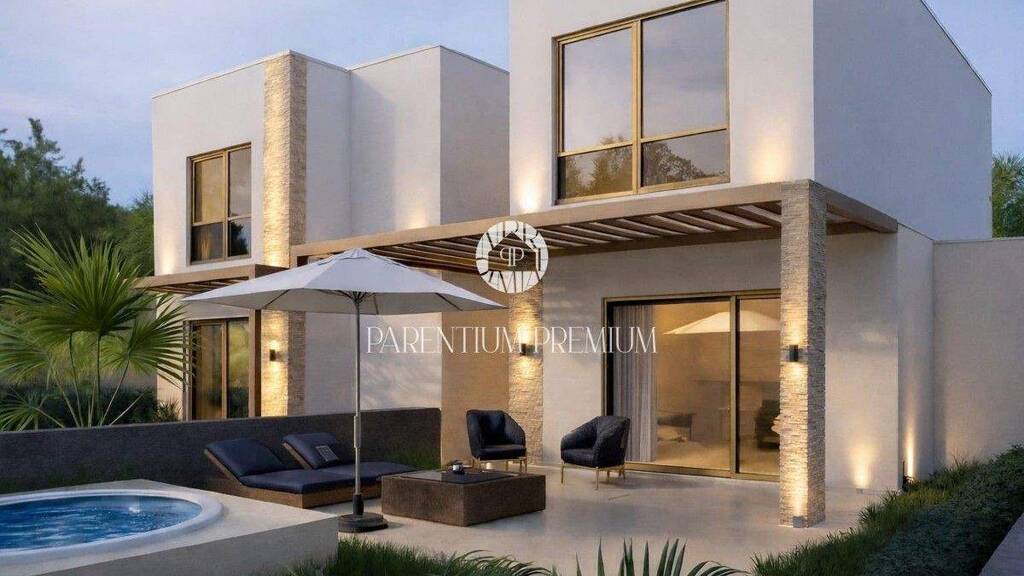 Im Obergeschoss befinden sich zwei komfortable Schlafzimmer, jeweils mit eigenem en-suite Badezimmer. Von der Terrasse im Obergeschoss bietet sich Meerblick, was die Attraktivität der Immobilie zusätzlich unterstreicht.