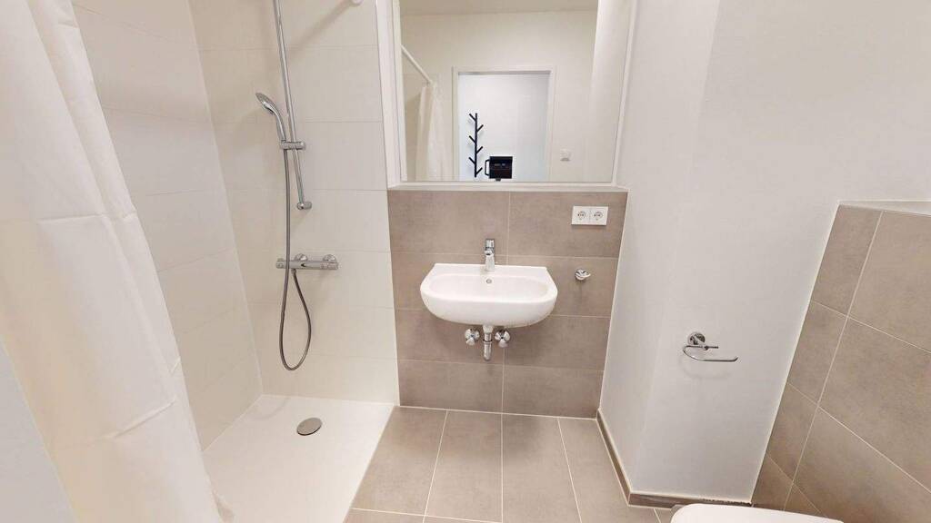 Unsere Zimmer mit geteiltem Wohnbereich sind genau das richtige für alle, die ihr Studium von Anfang an mit einem Gefühl von Gemeinschaft verbinden möchten. Die Wohnfläche von ca. 77 m² verteilt sich auf drei Schlafzimmer mit jeweils eigenem en-suite Badezimmer und einer von diesen Zimmern gemeinschaftlich genutzten Wohnküche. Dein Zimmer verfügt über eine schalldichte Eingangstür in Qualität einer Wohnungseingangstür und dein privates Badezimmer ist nur von deinem Zimmer zugänglich, was die nötige Privatsphäre schafft. Natürlich sind alle Zimmer modern und komfortabel gestaltet.
