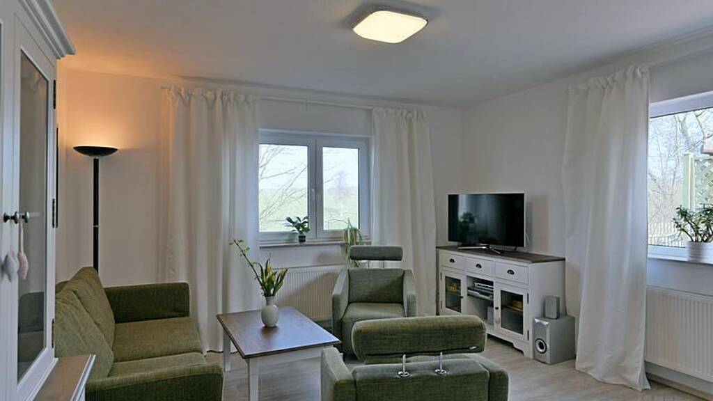 ### Please note the availability date! Bitte das Verfügbarkeitsdatum beachten! ### große möblierte Maissonette-Wohnung in Dresden-Schönfeld, ruhige Lage am grünen Ortsrand; WLAN, Grundreinigung, BW-Wechsel und PKW-Stellplatz inklusive; unten: großes Wohnzimmer mit Couch, Sessel und TV, vor dem Terrassenausgang ein großer Esstisch; große Terrasse mit Möbeln am Wohnzimmer; separate Küche mit kleinem Esstisch; mit Waschmaschine; separates WC; Wohnungsflur mit Stauraum; oben: großes Bad mit Dusche, WC und Eckbadewanne; großes Schlafzimmer mit Doppelbett, Kleiderschrank und Gästebett; kleines Schlafzimmer mit zwei Einzelbetten, kleiner Flur mit Sideboard; Pauschalmiete 1.180,00 Euro bei 1 Person; wird an max. 4 Personen vermietet; Kaution 1.600,00 Euro; Mindestmietdauer 3 Monate; Endreinigung Mietersache; Pflichtangaben zum Energieausweis: Energieausweis gültig bis: 02.04.2030; Baujahr Gebäude: 1995; Energieausweis: nach Verbrauch; Energieverbrauch: 85.1 kWh/(m²a); Energieeffizienzklasse: C; Primärer Energieträger: Heizöl EL