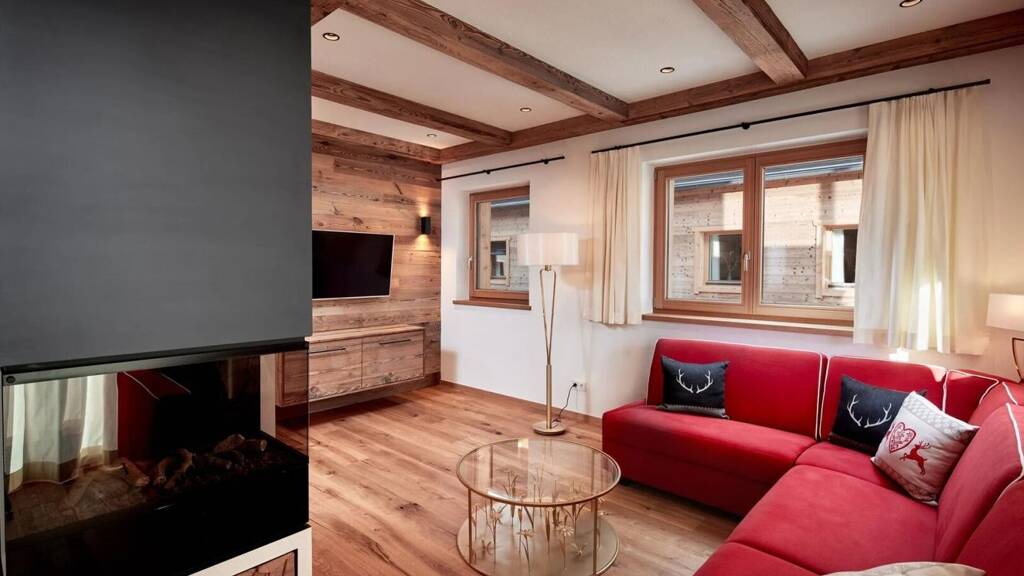 Mit einer Wohnfläche von ca. 78,38 m² präsentiert sich diese hochwertig ausgestattete Wohnung als idealer Rückzugsort für anspruchsvolle Urlaubsgäste. Der großzügige Wohn-/Essbereich (ca. 34,37 m²) besticht durch seine helle Raumwirkung, einen zentral positionierten Kamin sowie den direkten Zugang zum großzügigen Süd-Balkon (ca. 15,55 m²) mit traumhaftem Ausblick auf das imposante Jakobskreuz.