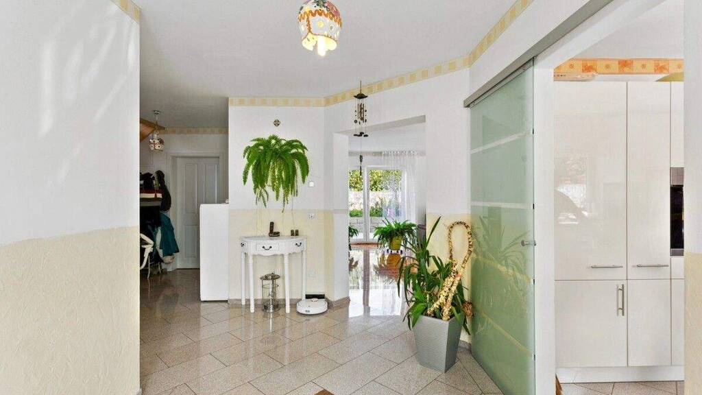 Im Wohnzimmer sorgen bodentiefe Fenster und ein Kamin für eine helle, einladende Atmosphäre und gemütliche Abende. Die moderne, voll ausgestattete Küche mit direktem Zugang zur Terrasse macht das Herzstück des Hauses komplett.