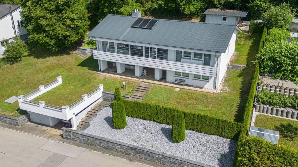 Das in Hanglage gelegene Grundstück bietet Ihnen auf Straßenniveau für Ihre Fahrzeuge eine Garage und einen Carport. Der Zugang zum Grundstück wird durch eine Mauereinfassung und ein elektrisches Gartentor im Aufgangsbereich erschwert. Direkt am Carport befindet sich das erste "Special" - Sie gelangen durch einen kleinen Tunnel bis zum überdachten Bereich vor dem Hauseingang und sind somit nicht vom Wetter abhängig, ob Sie Ihre Einkäufe trockenen Fußes transportieren können. Die Eingangstüre im Untergeschoss bringt Sie rechter Hand zum Gäste- oder Kinderbereich mit einem Schlaf/Wohnzimmer, einem erneuerten Bad mit Dusche, einer Büro-Ecke und kleiner Garderobe. Im hier befindlichen Abstellraum sind aktuell auch Anschlüsse für die Anbringung einer Sauna vorbereitet. Diese Räumlichkeiten wären auch als kleine Einliegerwohnung nutzbar. Ebenfalls befinden sich im Untergeschoss noch weitere diverse Nutz- und Lagerräume und der Heizungsraum. Über den offen gestalteten und besonderen Treppenbereich gelangen Sie in die Hauptwohnung im Erdgeschoss mit insgesamt ca. 150 m² Wohnfläche und werden von der großzügigen Diele mit Klavier empfangen. Linker Hand erreichen Sie die ebenfalls im Jahr 2010 erneuerte Einbauküche, welche vollständig offen zum Wohn- und Essbereich gehalten ist. Nach Eintritt ins Wohnzimmer sticht Ihnen auf Grund der bodentiefen Fenster und der großen Schiebetüren sofort der außergewöhnliche Ausblick über Tuttlingen ins Auge. Hier im Herzstück des Hauses können Sie im Sommer die Sonnenstrahlen einfangen und es sich im Winter vor dem nachträglich eingebauten Holzkamin gemütlich machen. Ein kleines Heimkino mit Beamer, Leinwand und Dolby Surround System sorgt für die Familienunterhaltung an regnerischen Tagen. Durch eine kleine mobile Trennwand wurde hier noch ein kleines Büro abgetrennt. In einem separaten Bereich befinden sich das Kinderzimmer (früher zwei Kinderzimmer) mit Balkonzugang, das Elternschlafzimmer und das ebenfalls erneuerte Tageslichtbad mit Wanne, Dusche, WC, Bidet und Waschbecken. Ein Gäste - WC rundet diese Etage für Sie ab. Die "Haustüre" im Erdgeschoss ermöglicht Ihnen den Zugang in den Garten auf der Nordseite des Hauses und einen direkten Zugang zu angrenzenden Waldwegen auf denen Sie einen Spaziergang vornehmen und die frische Luft genießen können. Das außergewöhnlich große Grundstück mit insgesamt ca. 1.219 m² ist komplett umzäunt.